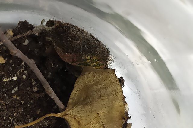 Oh, but then, the next day, I woke up and looked in his jar… only to find he had completely cocooned himself against the glass.