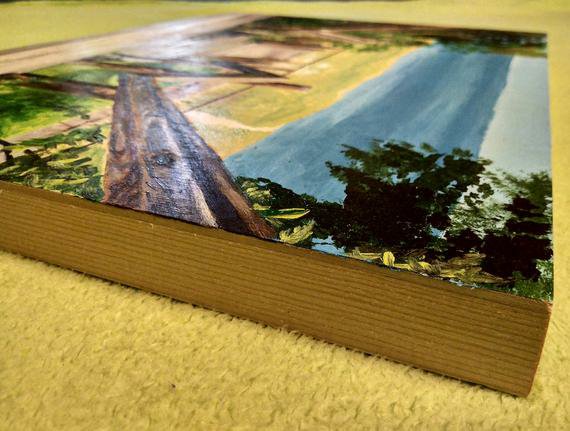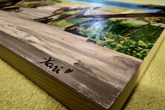 It’s slightly larger than I usually do (12 by 14 inches) and on wood rather than regular canvas. The wood can get kind of annoying to work with in larger sections, but I chose it specifically for this piece so that the boarder could match the boardwalk in the picture!