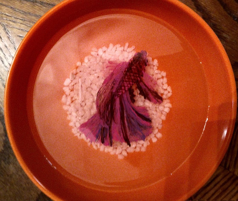 So, if you haven’t seen any of these resin piece before, you should first be informed that this is NOT a real fish—it’s made completely with paint and resin to look realistic. If you want to hear more about the process behind how I make these, check out this post.