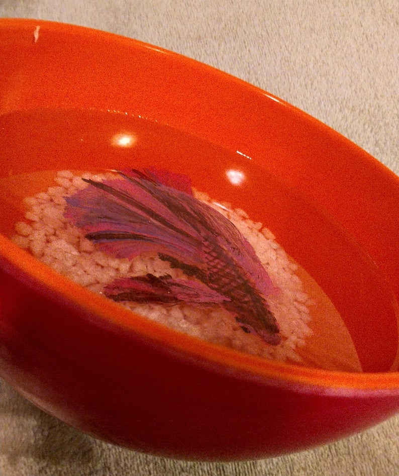 Well, I mean, the bowl is orange on the inside… but pink and pretty on the outside! Not that, like, it’s only the outside that counts or something… but, well, anyway, I think it looks great from all angles!