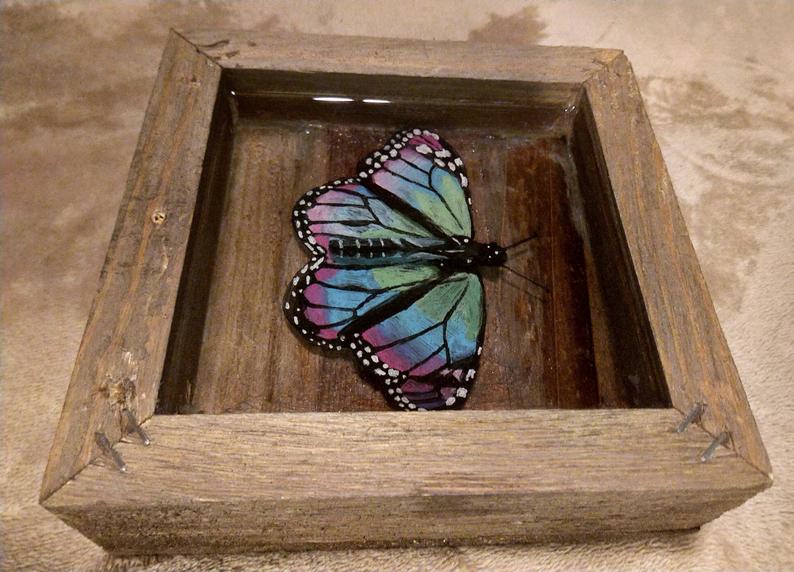 Now, this is a piece that I made with resin (and paint–remember that is not a real bug in there!), so it’s layered and everything to look 3-dimensional in there. It’s like having one of those bugs in a shadow box thing, except it’s not gross and decaying!