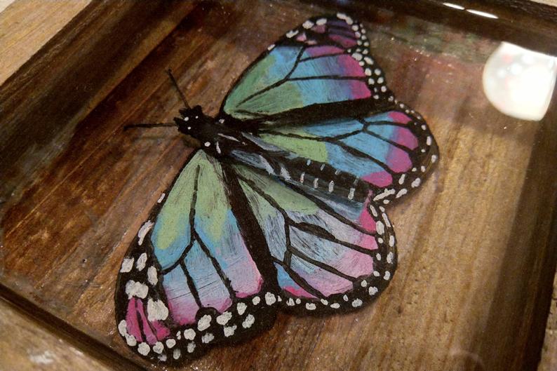 I have done another resin butterfly similar to this one, and I covered it in another ‘Art Piece of the Week!’ post. However, that one was just blue and… kind of dull, you know, so I wanted to spice it up with some more color this time!