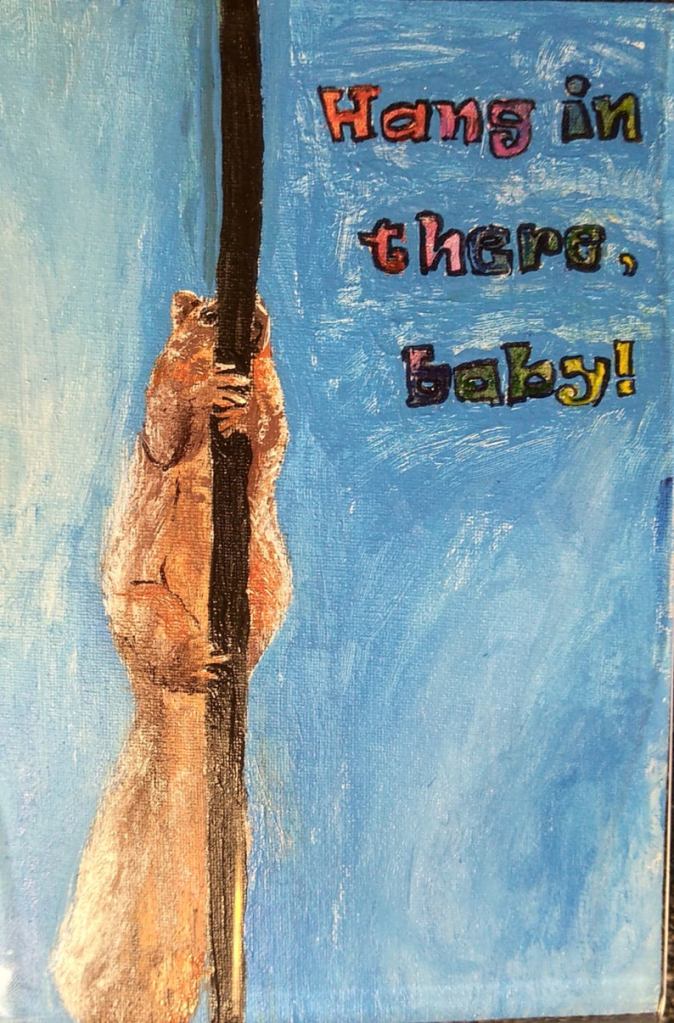 I had been wanting to make this one for a long time, since I actually took the photo of a squirrel on a pole which I used for reference over a year ago. And then I got to play around with the words/font a bit, too, so that was fun!