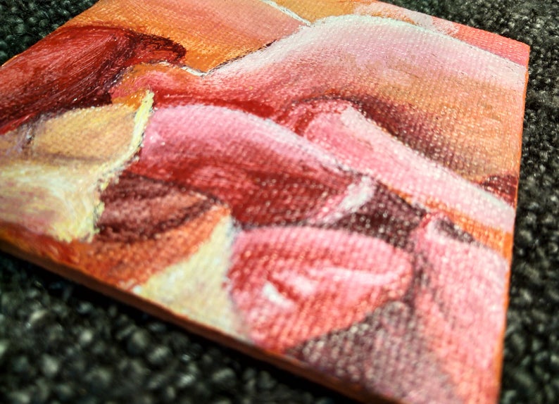 I’ve done a lot of small canvas magnets like this before, too, as you guys probably (…or probably do not) know. They’re really pretty, I think, and abstract-like because I focus on such small areas of flowers when I do them. Kind of Georgia O’Keefe-style, too, you think?
