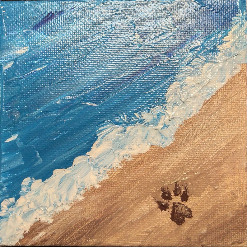 This mini beachy scene is actually only on a 4 by 4 inch (or about 10 by 10 centimeter) canvas, although it looks a lot bigger in pictures!
