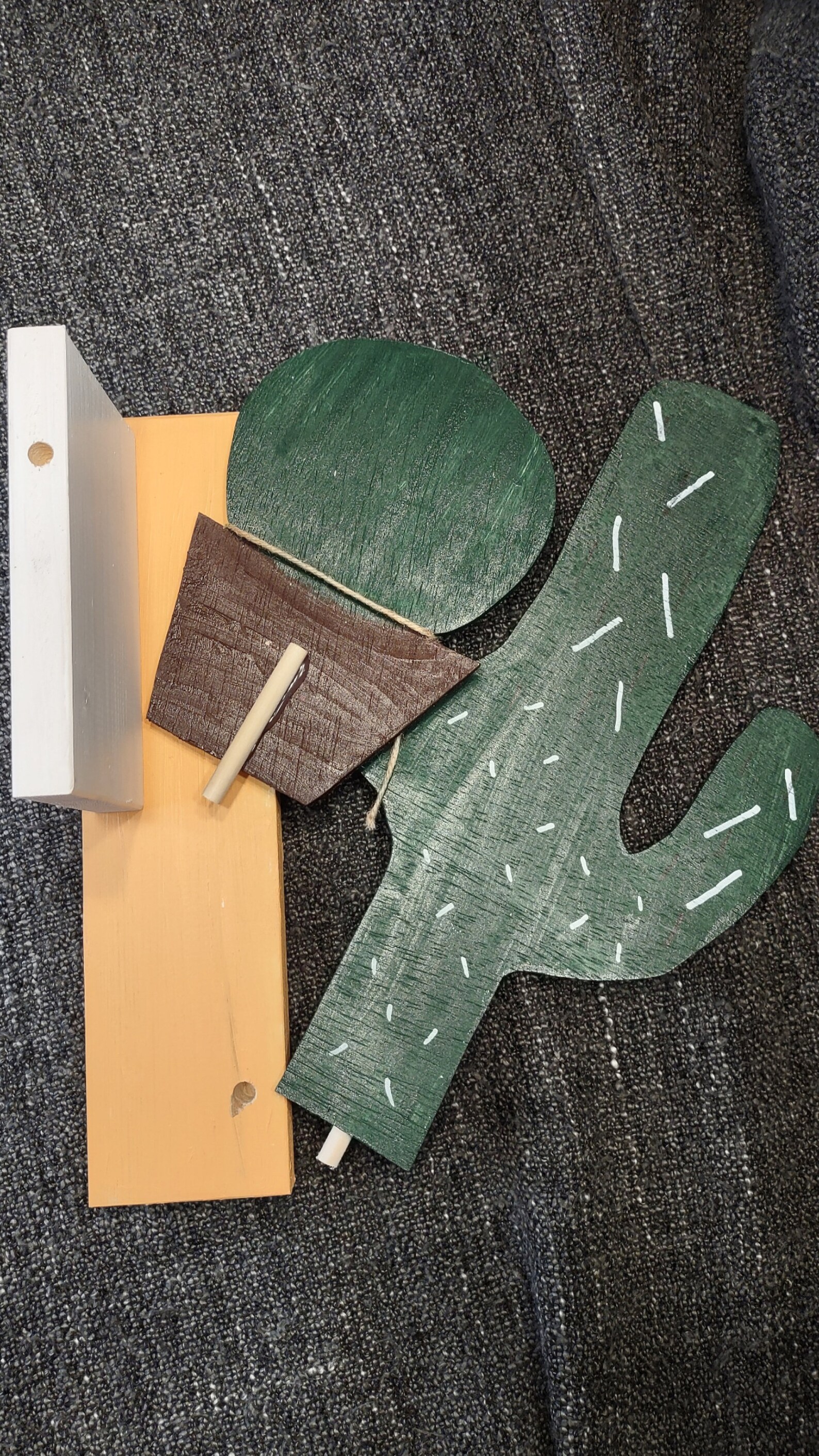 I wanted to make the pieces for the bases interchangeable, so that’s what the holes were added for. That way, the dowel rods/sticks attached to each piece could be put in each different hole for a different look and even switched out with some of the other bases. It’s all a mix and match type of situation!