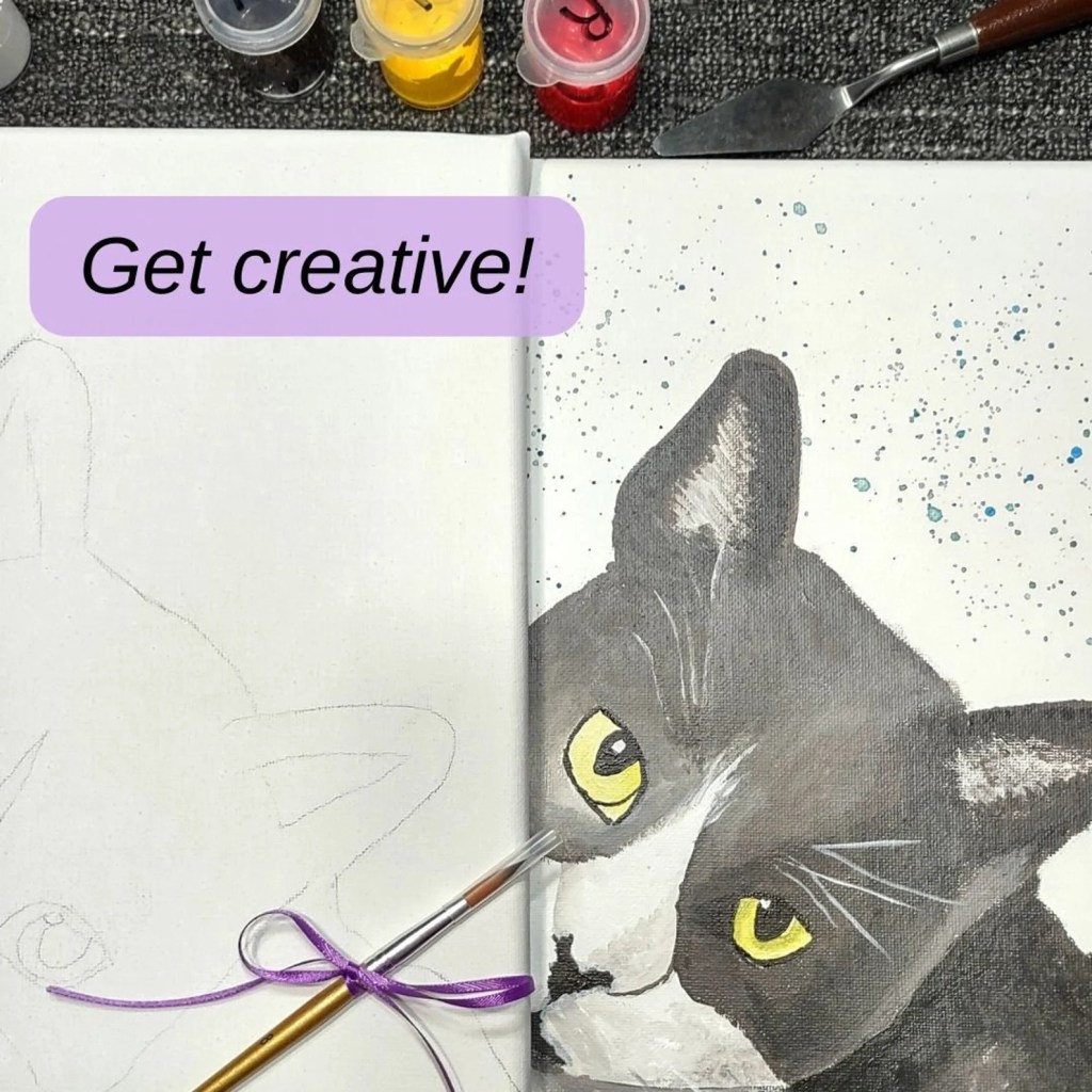 The last kit I currently have available is my cat/kitty painting, which, I will let you know, is a bit of challenge for those who are up to it. However, the class for this painting is still beginner-friendly, and I go pretty slow to take you step-by-step with the whole painting process.