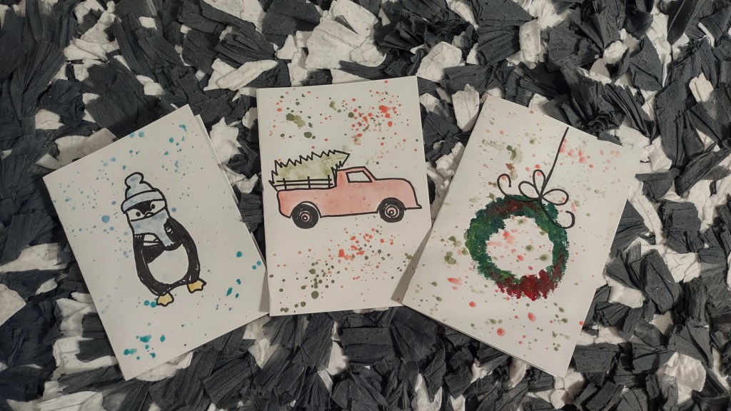 On a slightly more personal note, I’ve been experimenting with hand-painting my own cards in just the past few months, and I’ve found that they’ve been really popular at my pop-up art and craft shows, so I was thinking about making holiday-themed ones for a while. And, honestly, they aren’t too difficult for me to make, so I hope they bring a smile to my shoppers’ faces.