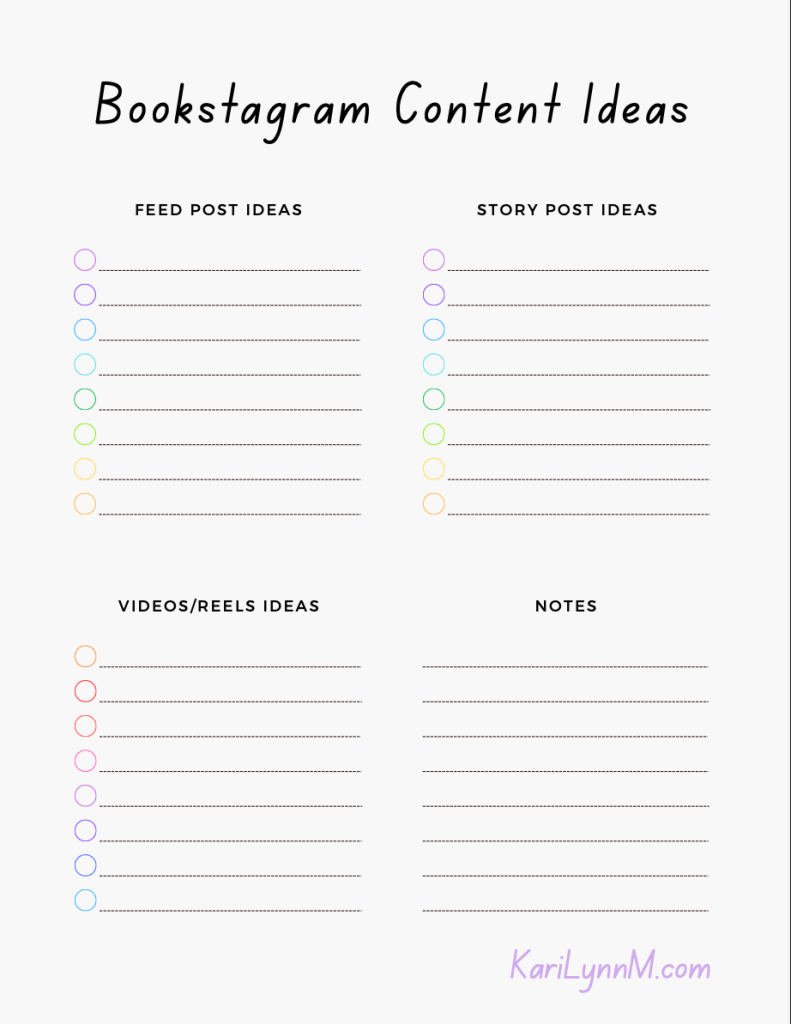 - A page for brainstorming Bookstagram Content Ideas