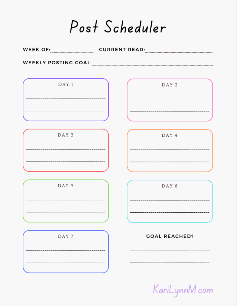 Which, now, leads me to share this… the latest set of printables I created using the Canva editor: a “Bookstagram Post Scheduler”!