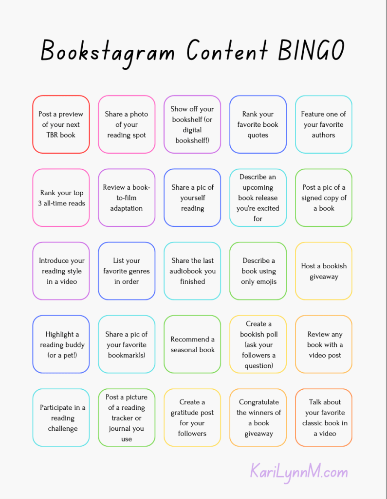 - A bonus Bookstagram Content Bingo sheet