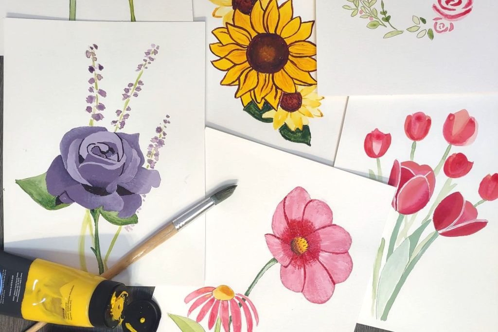 Watercolor is a tricky paint because, since it’s so transparent, it can’t easily be used to cover up mistakes in your paintings. And, while mistakes are always okay, you can always minimize them by practicing the flowers you want to paint before putting them down more permanently on your canvas or other painting surface.