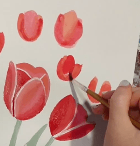 So, to make your floral paintings look as realistic as possible, you’ll want to re-create as many colors as possible that you see in real flowers. Even if you aren’t using a reference picture for your painting, try to grab and mix up as many versions of colors as you can that would be naturally occurring in the flower you want to create.