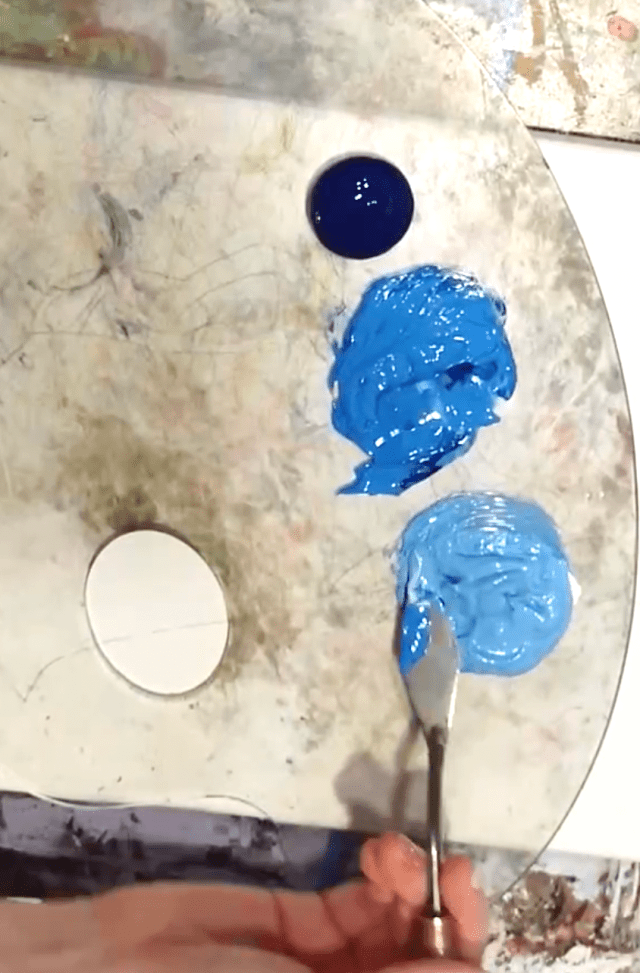 To try this, you’ll need to mix any color you’re using with a bit of white on your painting palette. White is a “lightener”, if you will, so it’ll always make any color lighter as you mix it.