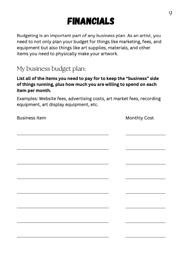 Now, here’s a bonus for you… it’s a totally free business plan tailored just for artists! Ah!