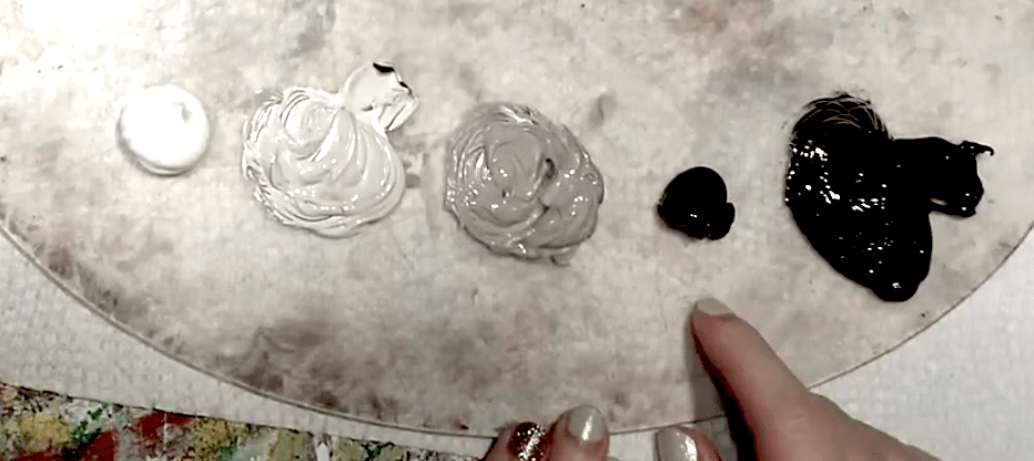 To paint in grayscale, use regular white and mix a few shades of gray using either a tube of black or a tube of raw umber. Personally, I find raw umber much easier to work with because, when you try to lighten up black paint, you may sometimes get a blue tint to your grays. With raw umber, you will never get that blue tint.