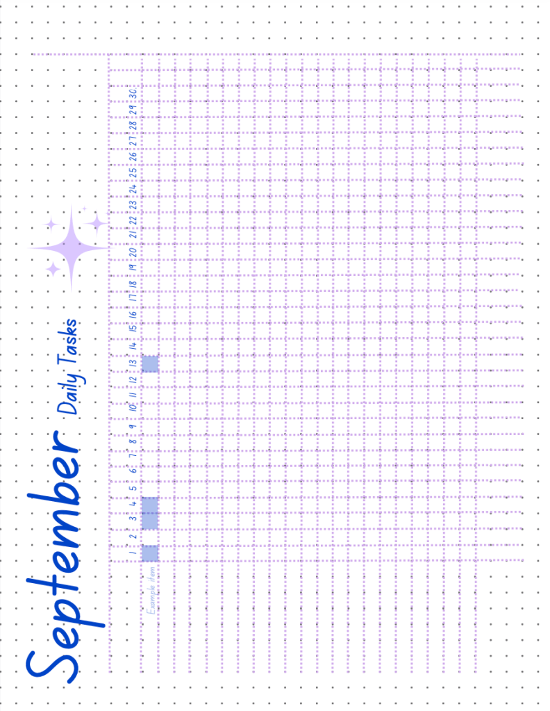 - Monthly “daily tasks” trackers