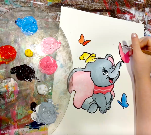 Generally, you will only need a medium roundhead brush and acrylic paints in red, blue, yellow, white, and black to complete most classes. All other materials may be items you find around your home—such as a butter knife to mix your paints and a paper plate to mix paints on. Even having watercolor paints are optional because you will learn how to make your own watercolors out of acrylics!