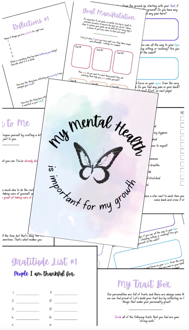 Available now as a printable book, you can get the journal for yourself and work on everything from self-esteem and mood tracking to mental safety planning, gratitude building, and so much more.